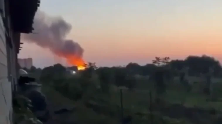 Aufnahmen zeigen massive Explosionen und Rauchwolken. Der russische Telegram-Kanal “Rybar” (1,1 Millionen Abonnenten) erklärt, dass der Ort angeblich von zwei britischen Marschflugkörpern namens “Storm Shadow” getroffen wurde. “An der Einschlagstelle brach ein großes Feuer aus.”